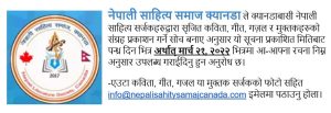 नेपालीसूचनासूचना-समाचार रचना आव्हानको सूचना by नेसास २०७८ फाल्गुन २२, आईतवार २२:०१ २०७८ फाल्गुन २२, आईतवार २२:०१ 0 comment Share 0FacebookTwitterPinterestWhatsapp 246 You Might Also Like नेपाली साहित्य समाज क्यानडाको नयाँ कार्य समिति – बाह्रखरी नेसास क्यानडाको पन्ध्रौं भर्चुअल काव्य शृङ्खला सम्पन्न नेपाली साहित्य समाज क्यानडाको ३३औँ भर्चुअल कवि गोष्ठी तथा कृति चर्चा सम्पन्न साहित्य सुसेली अंक ३ को लागि रचना पठाईदिनुहुन अनुरोध ! Share 0 FacebookTwitterPinterestWhatsapp नेसास previous post नेसास क्यानडाको सरस्वती पूजा तथा २१ औँ भर्चुअल कविता वाचन श्रृङ्खला सम्पन्न next post साहित्य सुसेली अंक ३ को लागि रचना पठाईदिनुहुन अनुरोध ! You may also like नेपाली साहित्य समाज क्यानडाको नयाँ कार्य समिति – बाह्रखरी २०७७ फाल्गुन १७, सोमबार ११:०४ भर्चुअल कविता वाचनको सूचना २०७९ बैशाख १, बिहीबार ०९:०७ नेपाली साहित्य समाज क्यानाडामा नयाँ नेतृत्व- नेपालटच २०७७ फाल्गुन १४, शुक्रबार ००:४१ फुटबल तथा कविता वाचन (गाईजात्रा विशेष) २०७८ श्रावण २३, शनिबार २०:३६ नेसास क्यानडाद्वारा सरस्वती पूजा एवं कविता वाचन कार्यक्रम सम्पन्न २०७९ माघ १५, आईतवार २१:३९ नेपाली साहित्य समाज क्यानडाको ३३औँ भर्चुअल कवि गोष्ठी तथा कृति... २०८० फाल्गुन १५, मंगलवार १२:२१ ने सा स क्यानडाद्वारा लक्ष्मी जयन्ती तथा युवराज भण्डारीका दुई... २०८० मंसिर १०, आईतवार १७:०० भर्चुअल कविता वाचनको चौबिसौं शृंखलामा सहभागिताको लागि सूचना २०७९ जेष्ठ ३, मंगलवार १९:३० उत्तर अमेरिका सीमा वारीपारी नेपाली कविता वाचन कार्यक्रम सम्पन्न २०७९ श्रावण १, आईतवार १५:४५ नेपाली साहित्य समाज क्यानडाको “भर्चुअल कविता वाचन- चौधौँ शृङ्खला” सम्पन्न २०७८ बैशाख १५, बुधबार १४:५१ Leave a Comment Cancel Reply Save my name, email, and website in this browser for the next time I comment. Δ